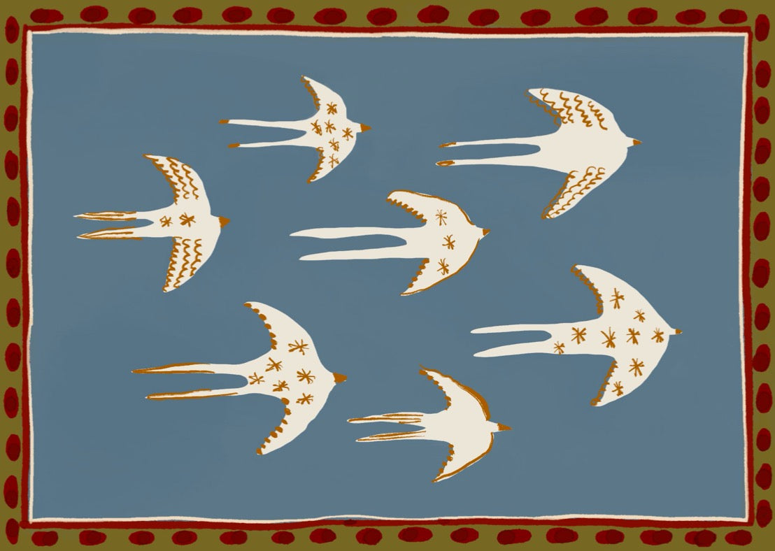 The illustrations feature flamboyantly dressed cowboys and desert companions set within dreamy natural landscapes. The debut collection, Dancing in the Desert, consists of ten individual prints, each inspired by moments drawn from books, films, songs or memories. Titles offer subtle narrative clues, leaving the wider story open to interpretation.